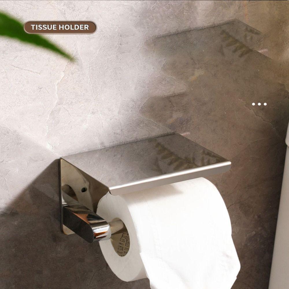 Gold Toilet Paper Holder Stainless Steel Tissue Roll Holder Phone Shelf Washroom