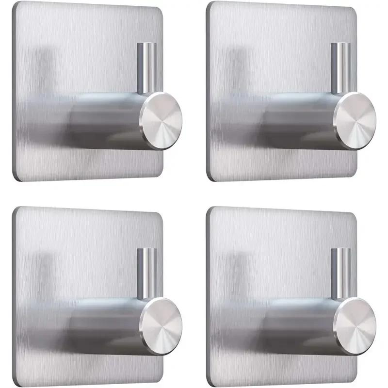 4pcs Self-Adhesive Towel Hooks 304 Stainless Steel Stick-On Wall Hooks For Home Coat Robe Bathroom Organization Accessories