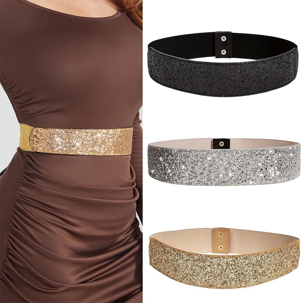 Широкий эластичный пояс Однотонный пояс для платья Высококачественный пояс со стразами для женщин