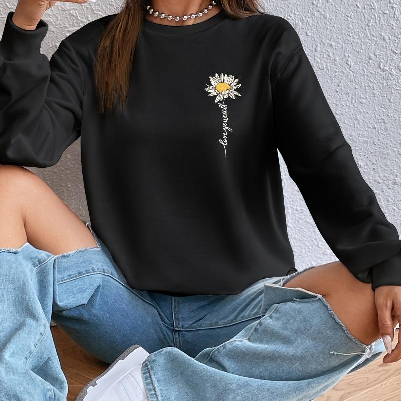 Женское худи с принтом и круглым вырезом, универсальное для уличного образа
