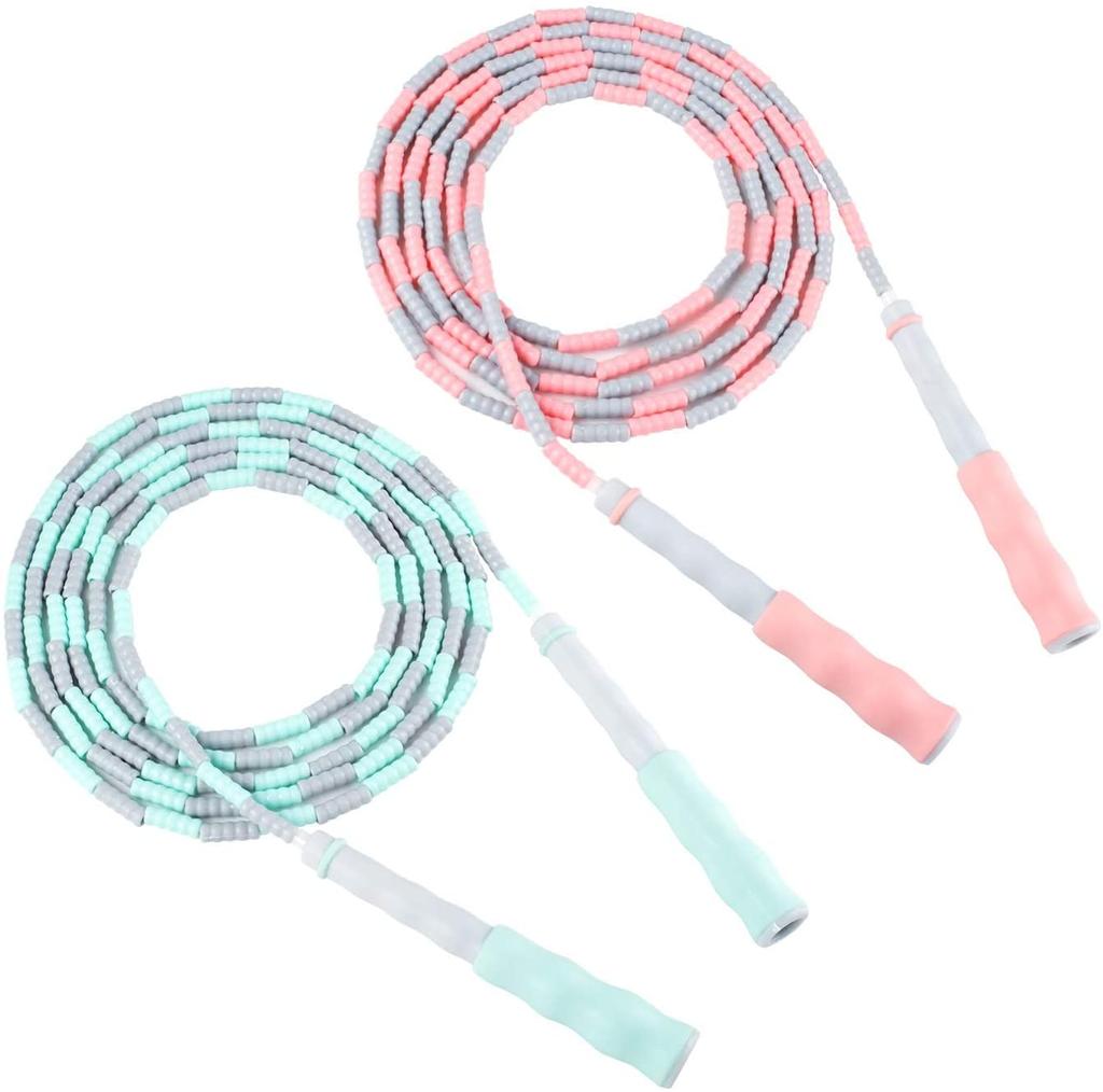 -- Они украшены мягкими, гибкими бусинами из ПВХ, которые обеспечивают идеальный вес, позволяющий легко прыгать без частых ошибок.. Мягкие бусины сделали веревку достаточно тяжелой, чтобы можно было прыгать, не делая ее слишком жесткой, если она случайно заденет кого-нибудь.. Кроме того, они не скручиваются и не запутываются, как пластиковые скакалки.