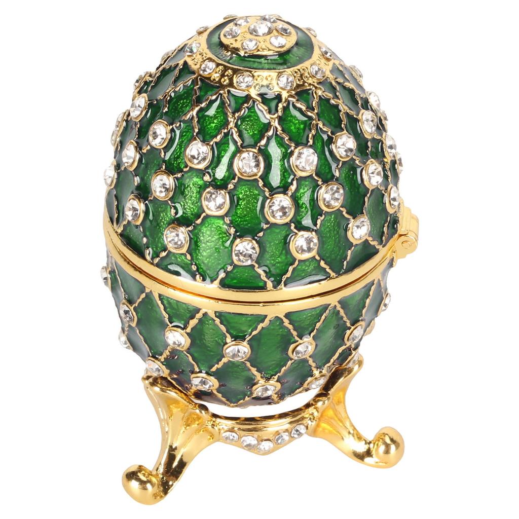 Яичная шкатулка из цинкового сплава, украшенная сверкающими стразами, изысканная элегантная металлическая шкатулка для драгоценностей для семейного офиса, для хранения, зеленая