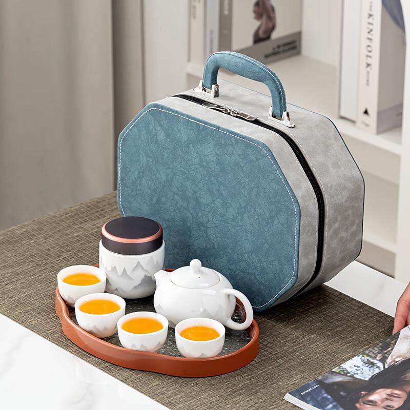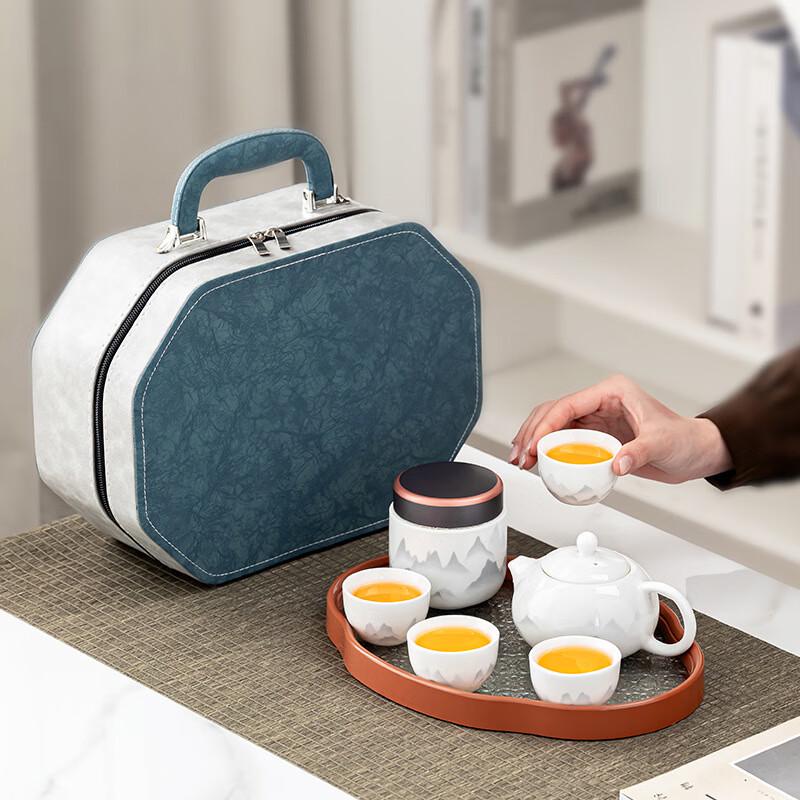 Xunyi Mutton Fat Jade Ink Landscape Kung Fu Tea Set