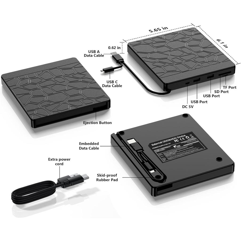 Внешний Blu-ray привод, USB 3.0 Type-C BD ридер, DVD/CD рекордер с двумя портами USB-A, слоты SD/TF – Blu-ray плеер для ноутбука ПК