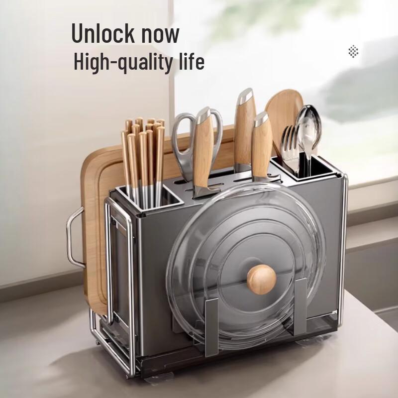 Magnetic Kitchen Knife Holder with Pot Lid & Cutting Board Rack