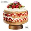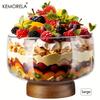 KEMORELA Большая стеклянная миска для торта Элегантная деревянная подставка Универсальный поднос для подачи тортов, салатов, десертов - Прочный, легко чистится