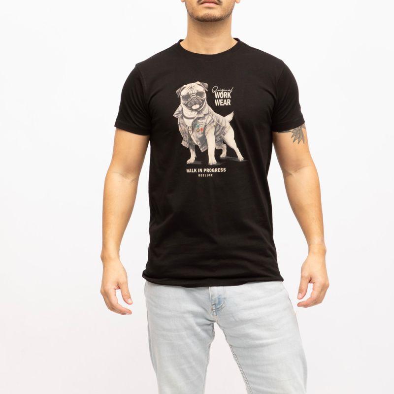 Однотонная хлопковая футболка с принтом мопса для мужчин DEELUXE 74