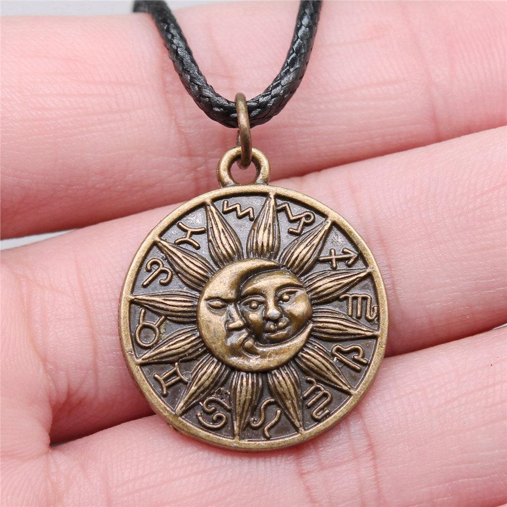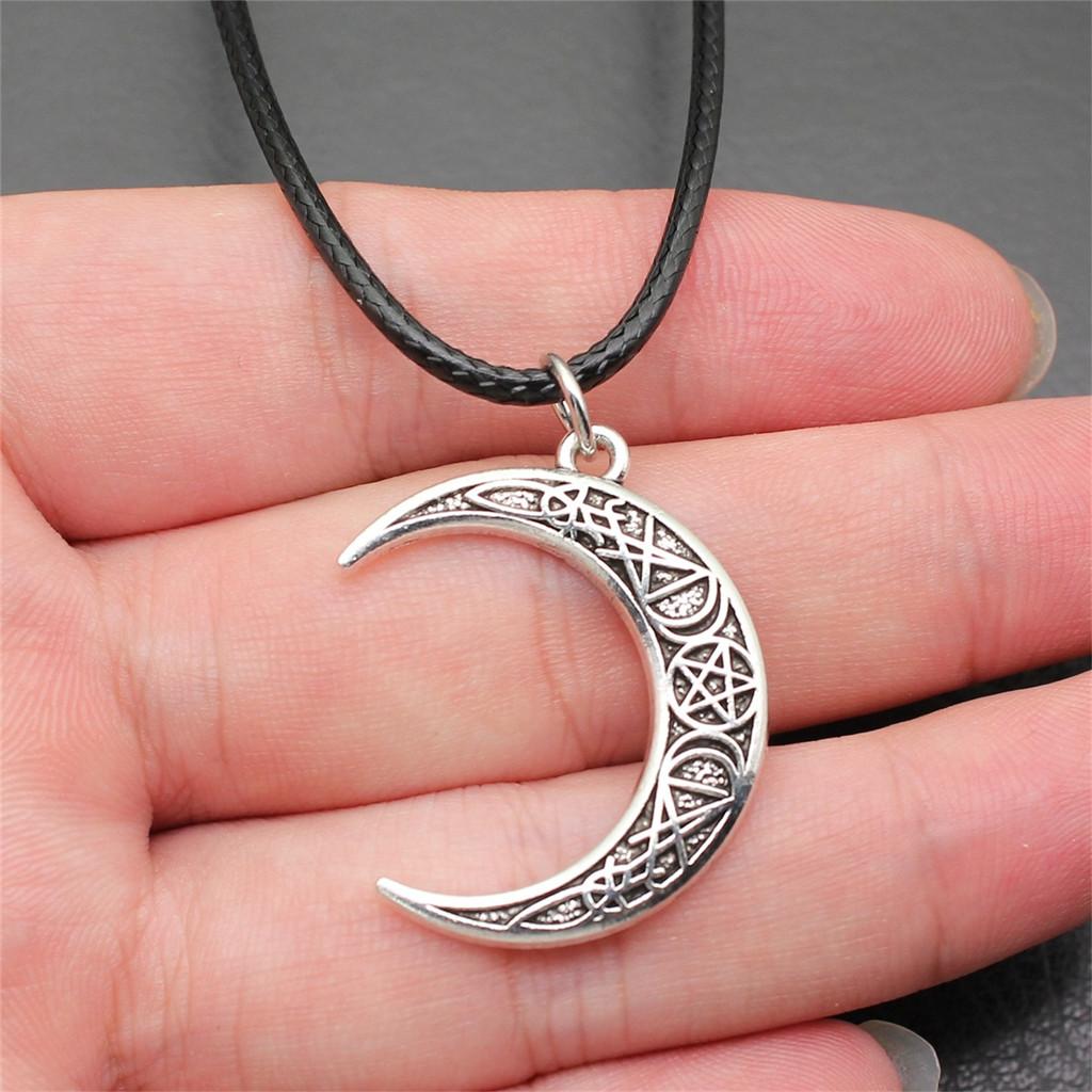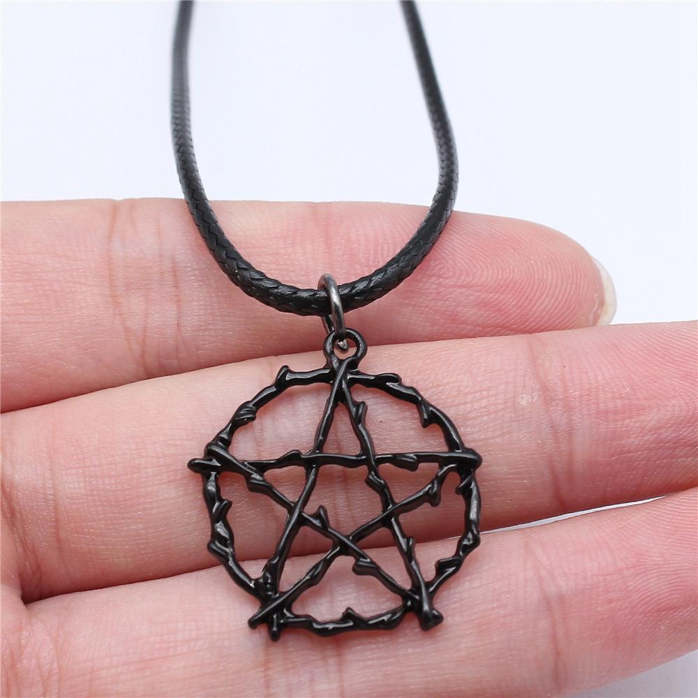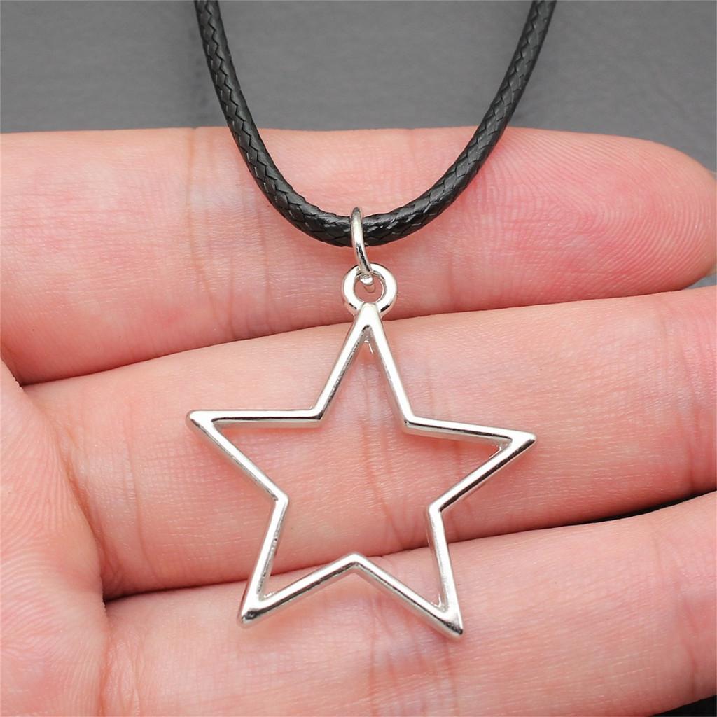 Ожерелье 45 см Кожаная цепочка Большая пятиконечная звезда Солнце Луна Пентаграмма Минималистичные компоненты для украшений QN072