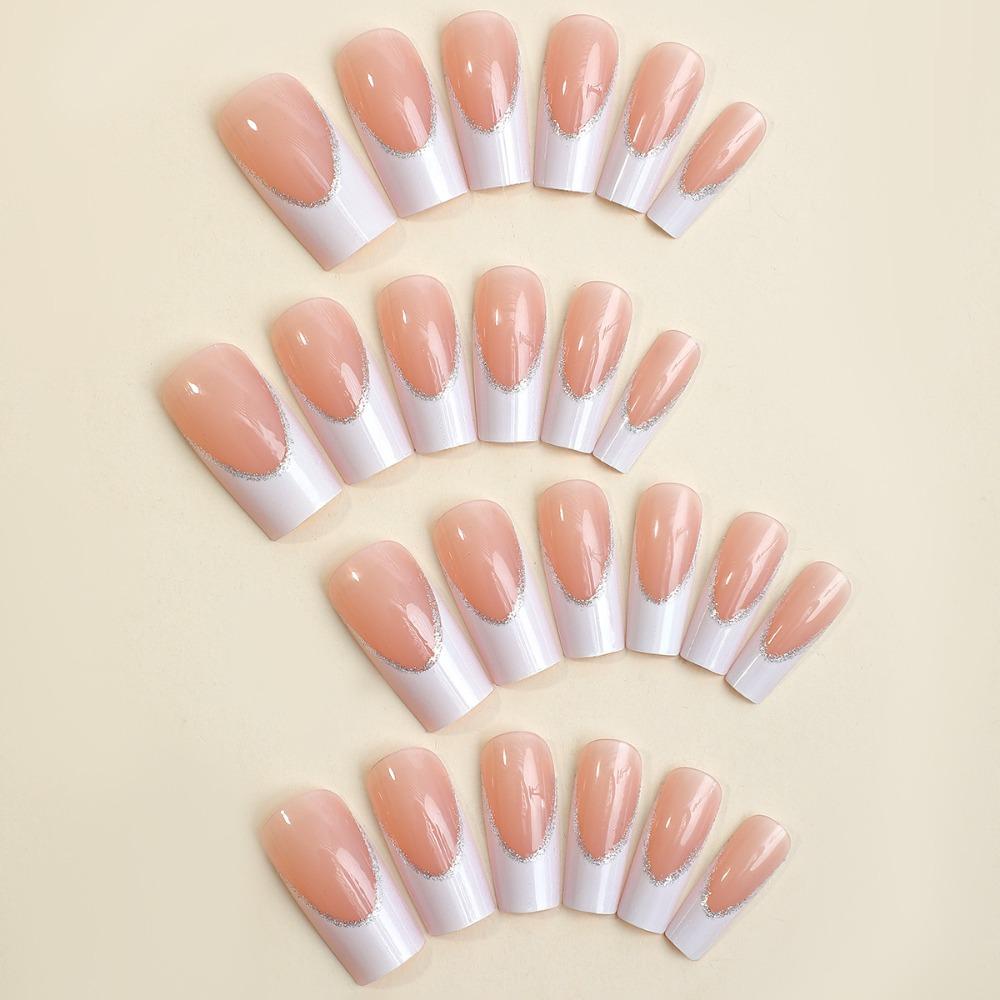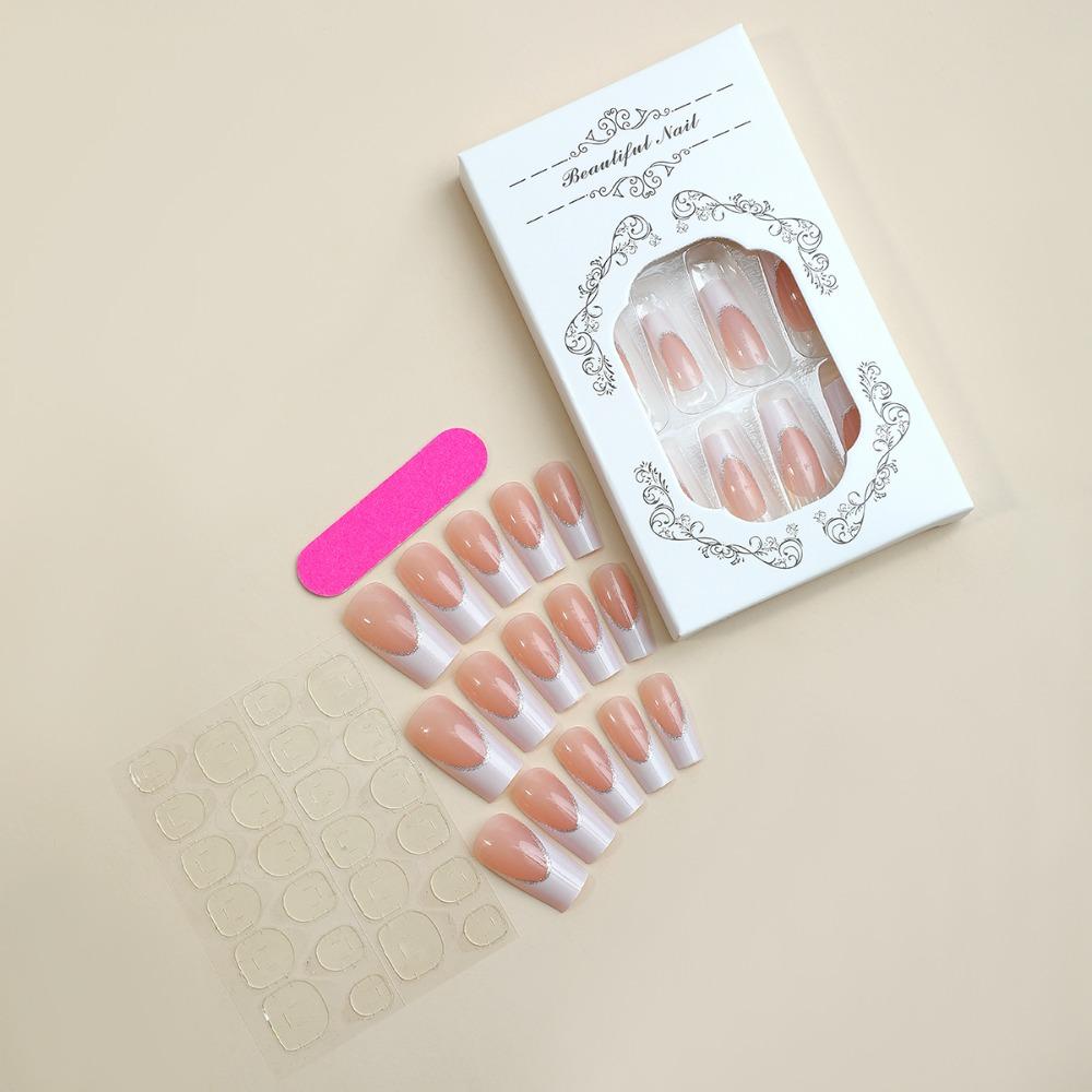 Полное покрытие, французские накладные ногти, квадратная головка, модные женские накладные ногти