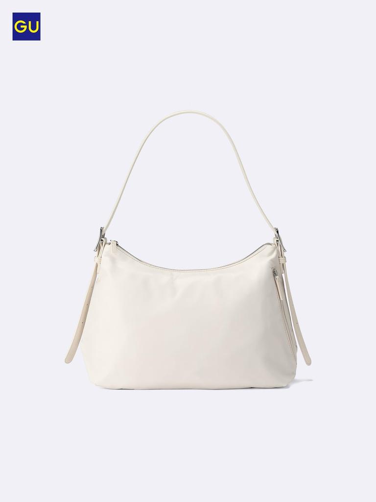 The UNIQLO GU 2WAY Nylon Bag is a versatile multi-pocket shoulder bag available in various color options (BLACK, OFF WHITE, RED, BEIGE). This product combines style and practicality, making it suitable for everyday use and travel. The shoulder part is made of synthetic leather, providing a comfortable wearing experience.