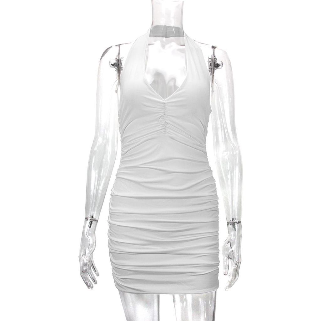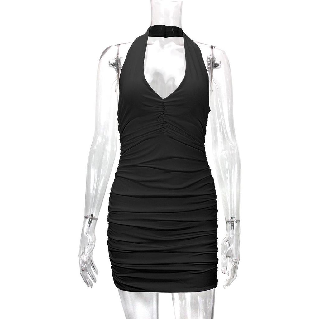 Почувствуйте элегантность в этом потрясающем летнем платье, созданном для того, чтобы заявить о себе в любой ситуации.. Платье, изготовленное из роскошного искусственного шелка, обладает мягкой и шелковистой текстурой, которая невероятно приятна на ощупь.. Платье имеет изысканный V-образный вырез и соблазнительный дизайн халтер, дополненный силуэтом с открытыми плечами, который излучает женственность.. Дизайн с открытой спиной добавляет нотку соблазнительности, а деликатные складки обеспечивают изящную и выигрышную посадку.. Идеальное для мероприятий в теплую погоду, это платье обещает как комфорт, так и стиль, что делает его незаменимым дополнением к вашему гардеробу.