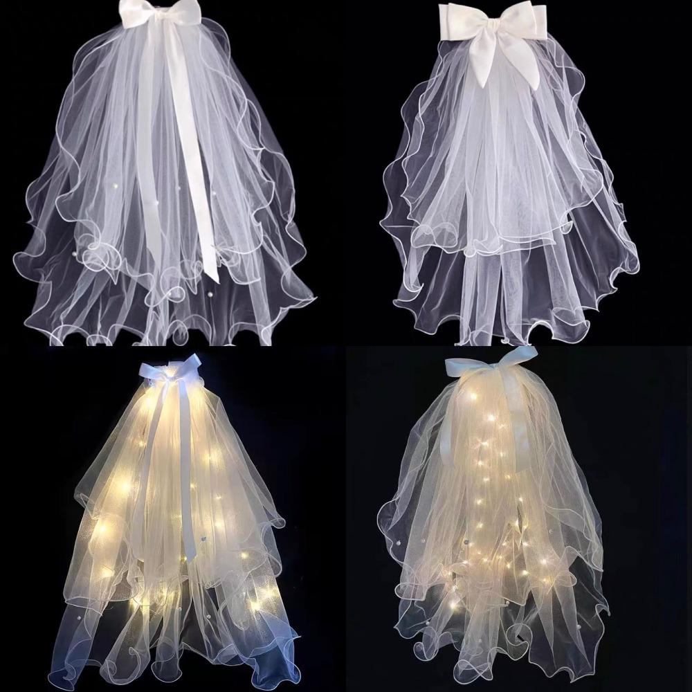 Аксессуары для волос Светящаяся свадебная фата Бант Светящаяся фата Свадебная фата для новой невесты для женщин