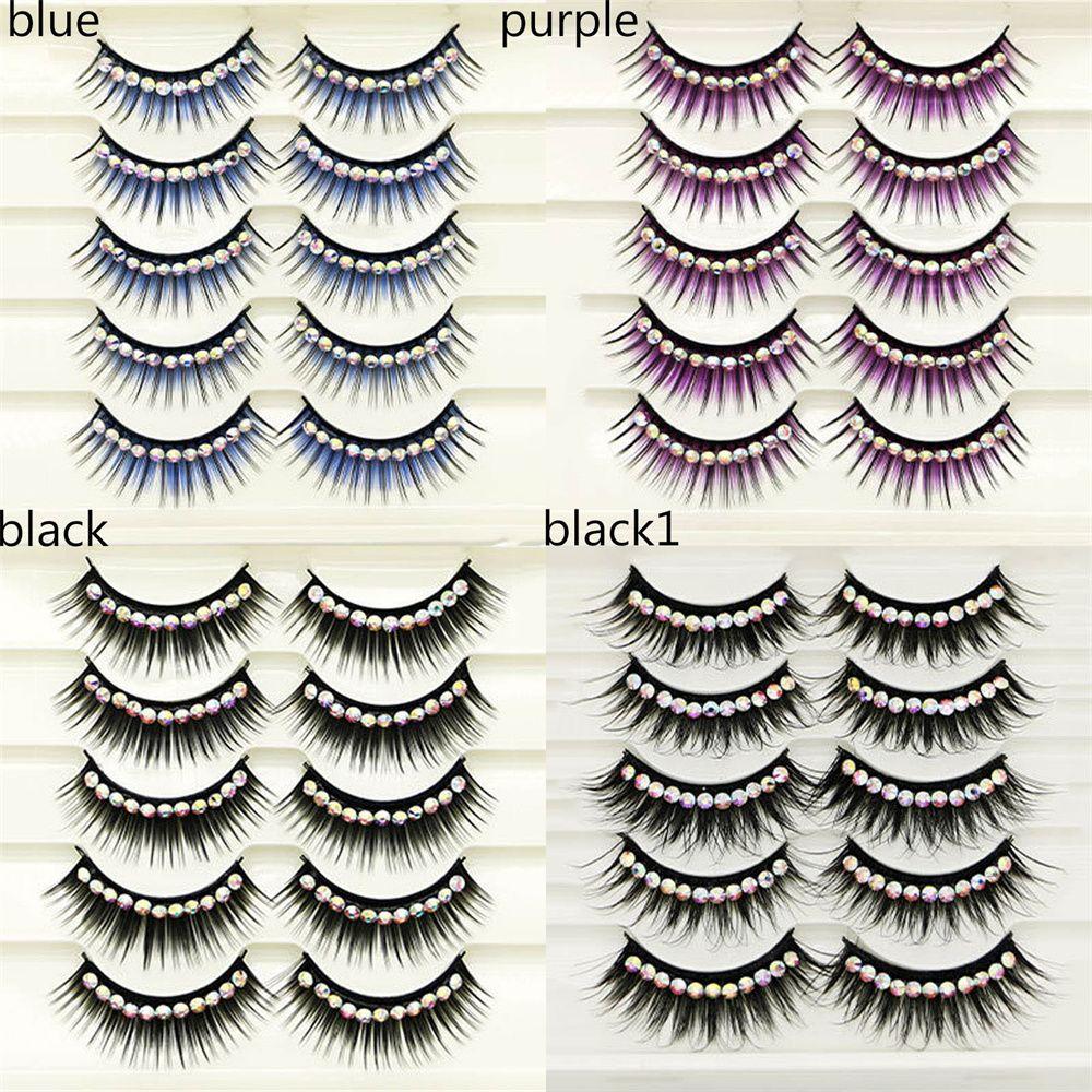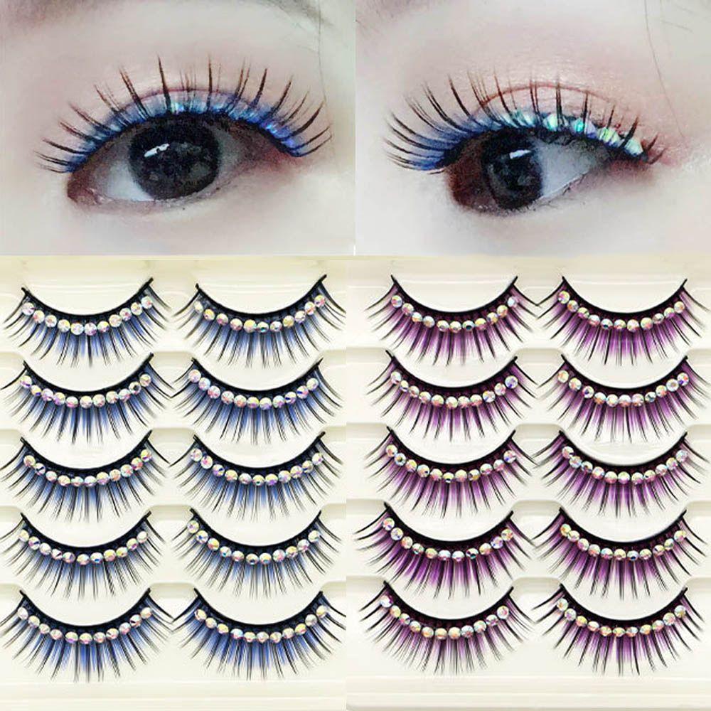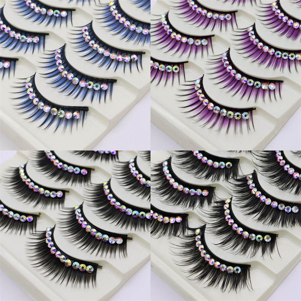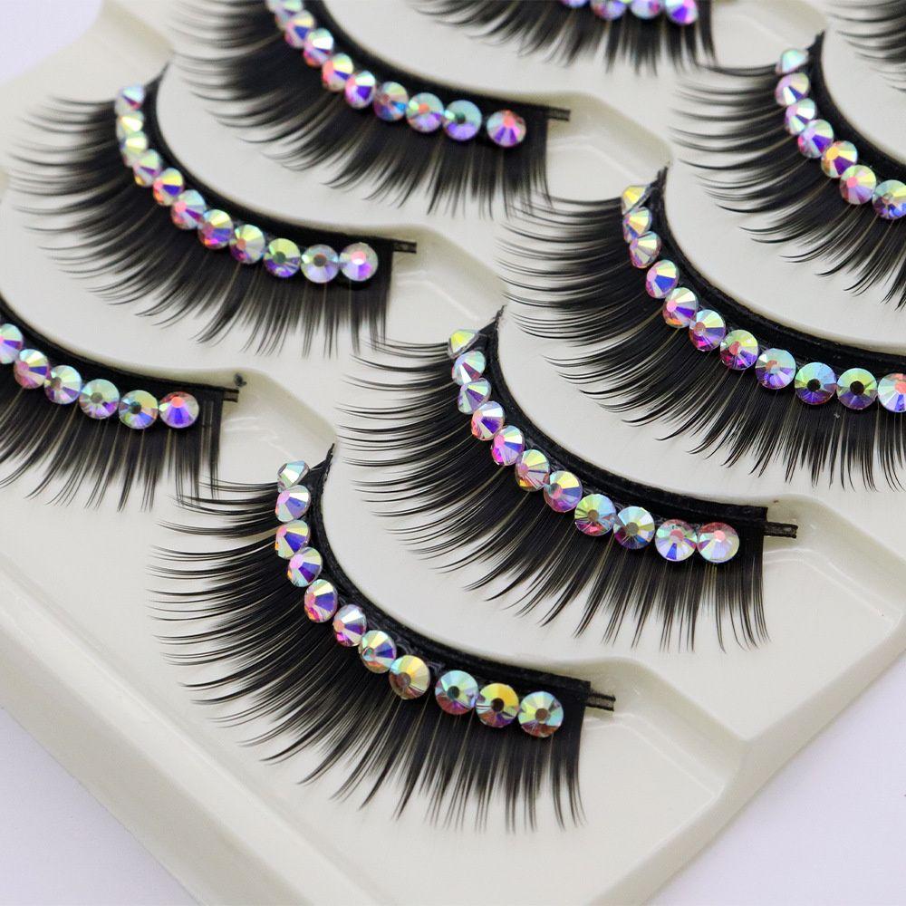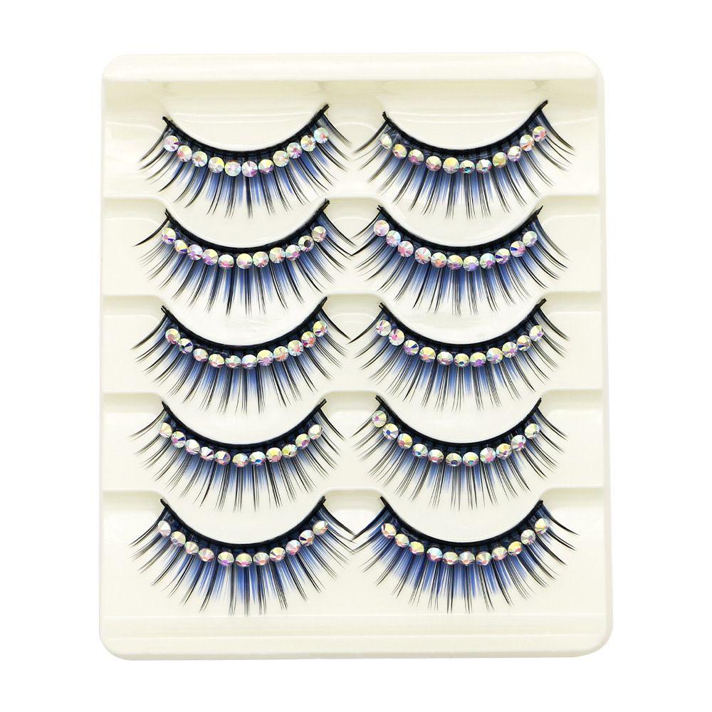 5 пар цветных накладных ресниц для макияжа, густые, преувеличенные, с блестящими стразами, норковые, 3D