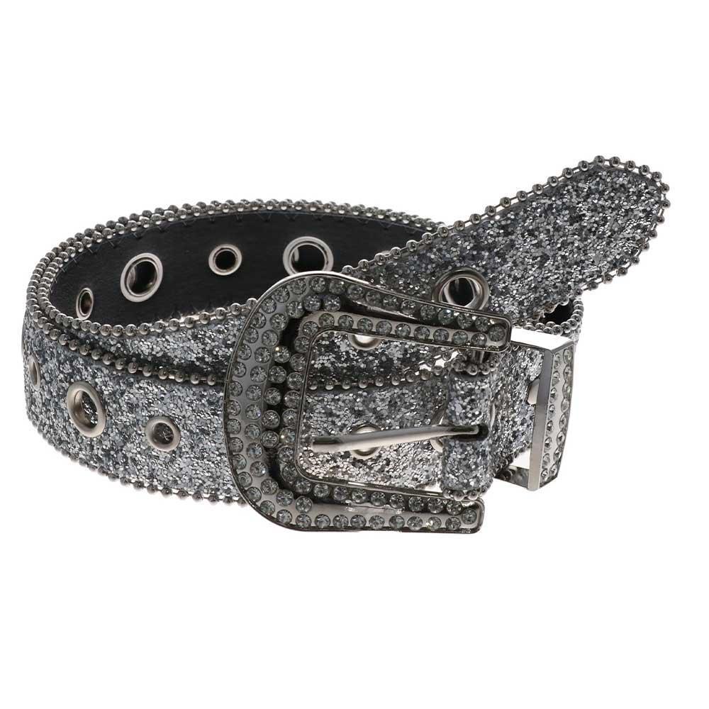 Beads Bordered Shiny Wide Belt Y2K Women PU Belt Adjustable Rhinestone Waistband Men