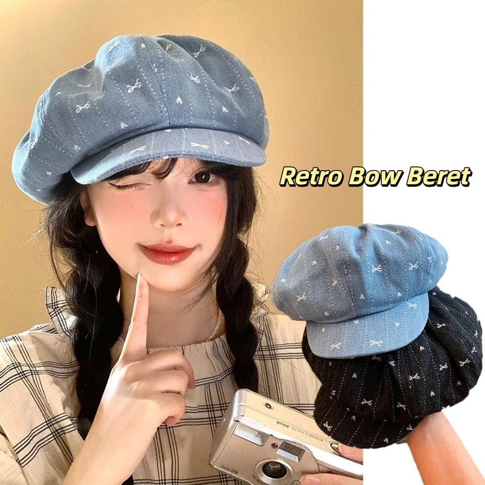 Japanese Octagonal Cap Cloud Newsboy Cap Trendy Retro Bow Beret Girls
