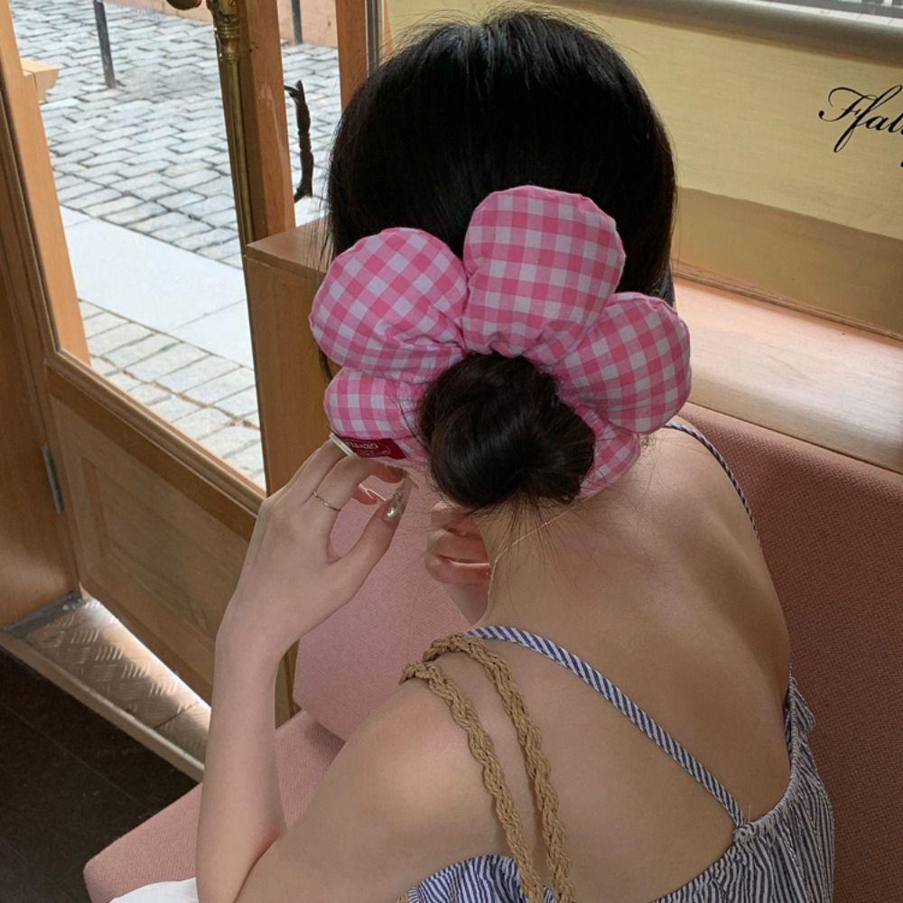 Резинки для волос с цветочным узором в клетку, тканевые, большого размера, резинка для волос, индивидуальные, преувеличенные, кольцо для волос, леди