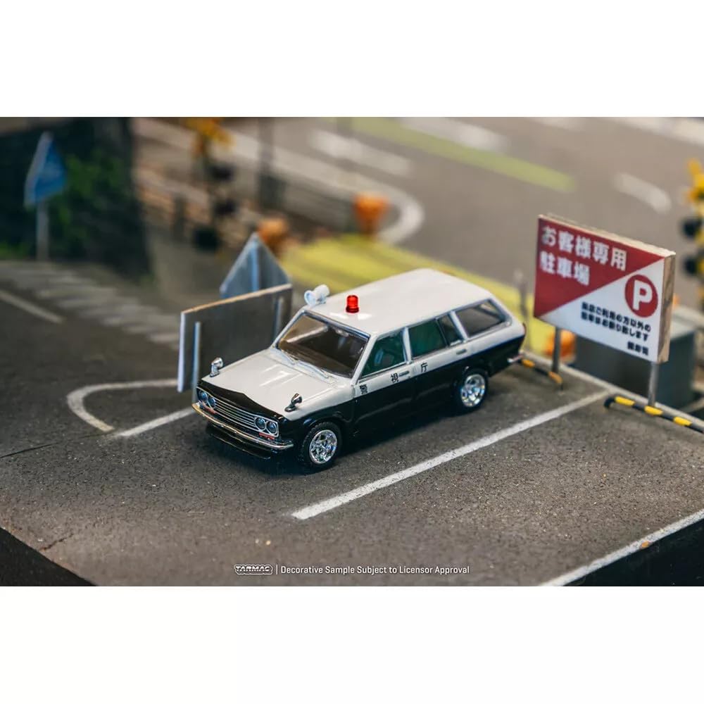 Tarmac Works 1/64 Scale Datsun 510 Wagon Police Car, Bluebird Japan Police Car, MiJo Exclusive [Parallel Import]