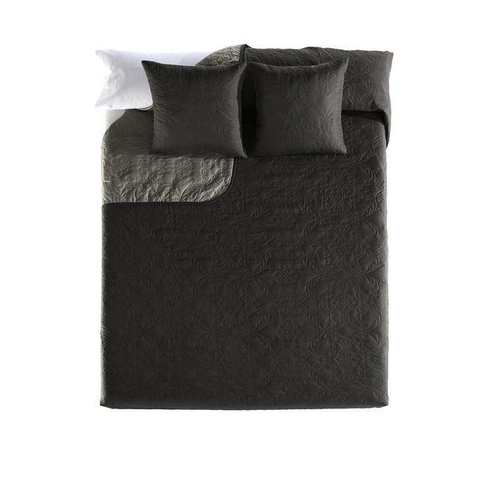 Couvre-lit bouti - CASA - 245x260 cm - Gris foncé - Uni - Coton - 2 coussins 50x50 cm - 102 fils