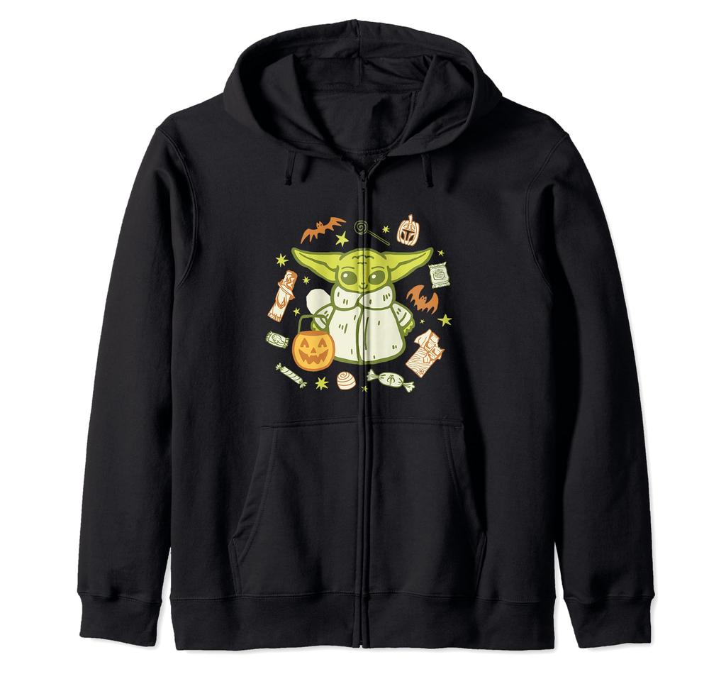 Star Wars The Mandalorian Grogu Halloween Cute Treat & Bat Zip Hoodie