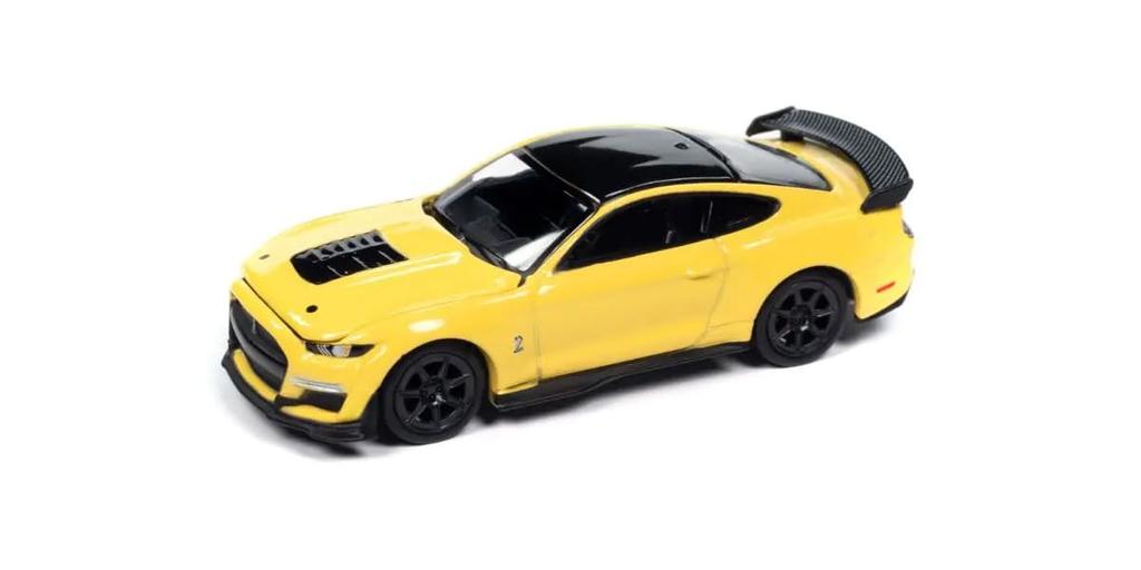 Kyosho AUTO WORLD 1/64 Scale 2021 Ford Mustang Shelby GT500 Carbon Fiber Track Pack Grabber Yellow/Black (Finished Product) AWSP171A