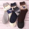 Мужские осенне-зимние толстые теплые шерстяные носки до середины икры - японский ретро этнический стиль, узор "мелкий ромб"