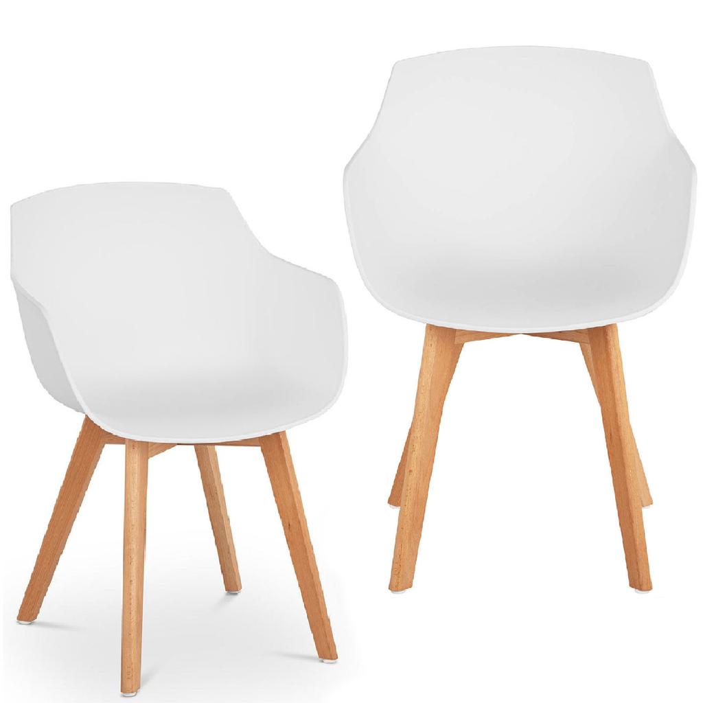Scandinavian plastic bucket chair with wooden legs up to 150 kg 2 pcs white