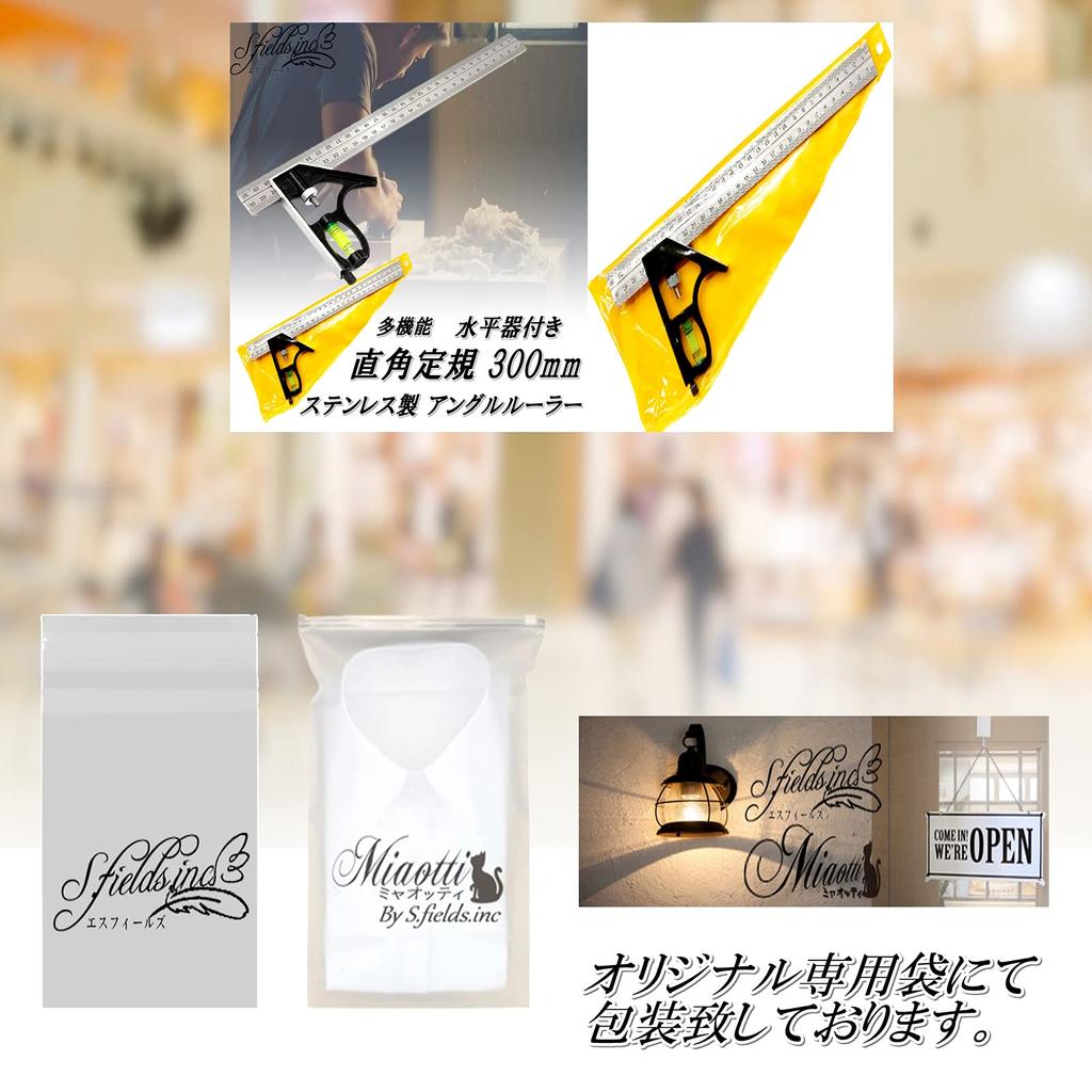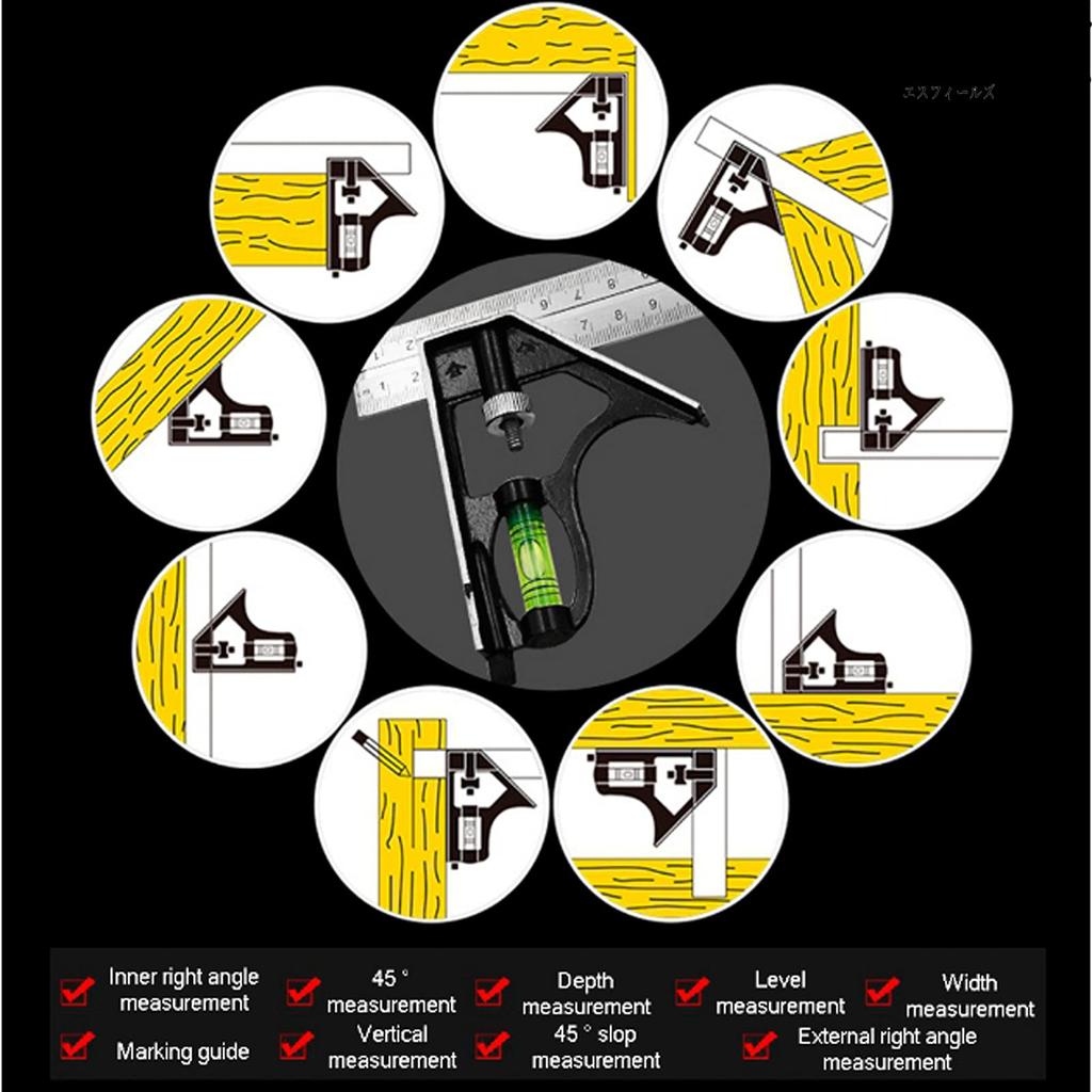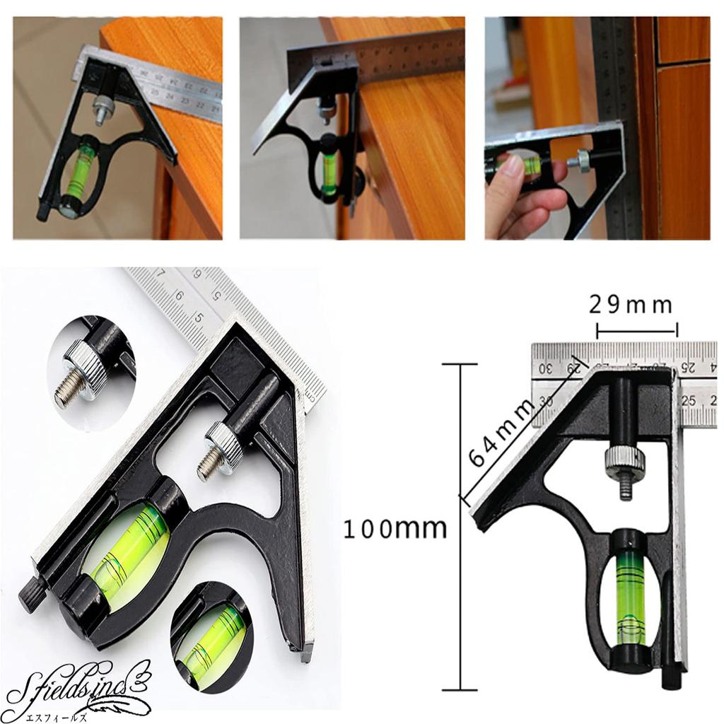 S.fields.inc 300mm Right Angle Ruler with Level, Stainless Steel Angle Ruler, Square Tool, Scribing Gauge