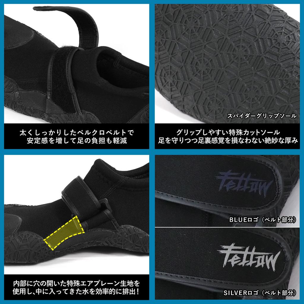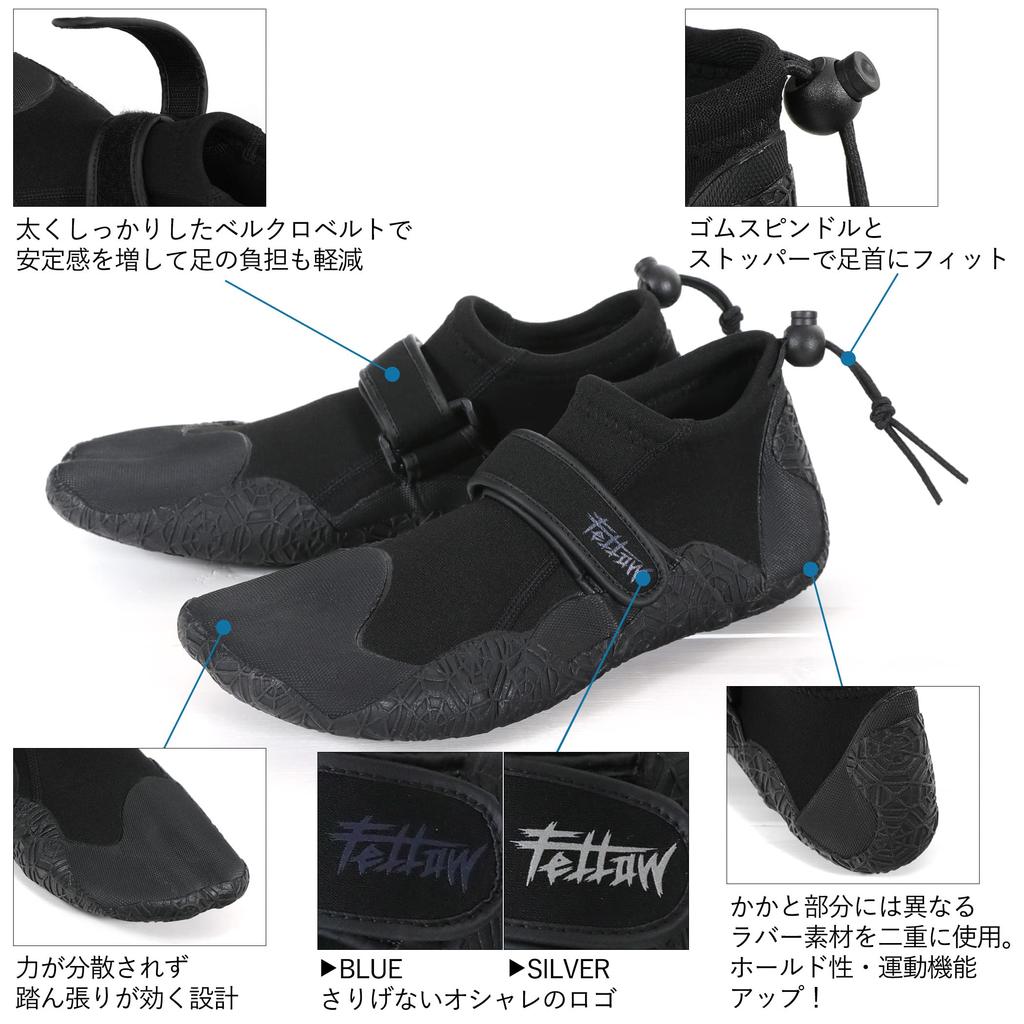 FELLOW Reef Boots, 2.5mm, Surf Boots, Marine Shoes, Water Shoes, Men's, Women's, Juniors, Blue, Size 23cm
