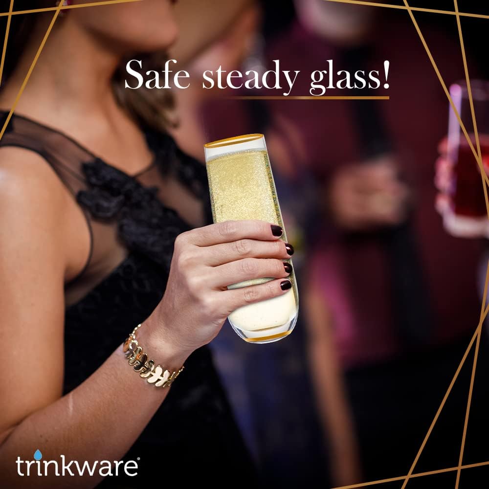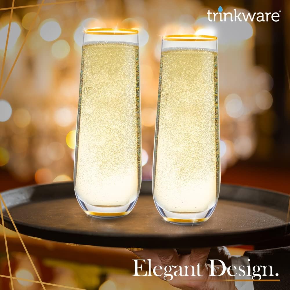 Набор из 4 бокалов для шампанского без ножки с золотым ободком - Бокал для мимозы для подружек невесты или для ежедневного использования