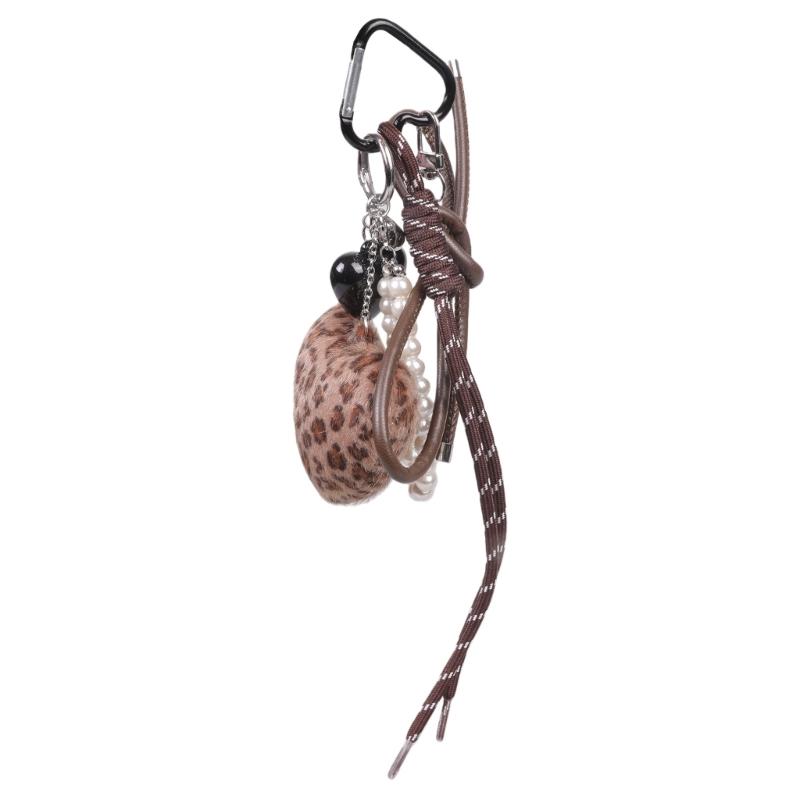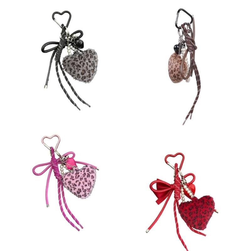 Стильный плюшевый брелок с леопардовым принтом, украшенный подвеской в виде сердца из искусственной кожи, шарм для сумки для женщин, модные аксессуары