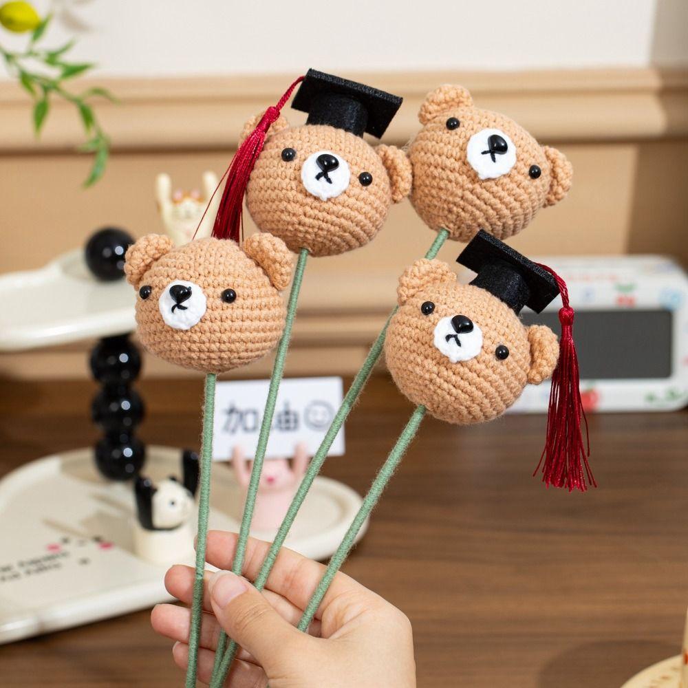 Hand Woven Yarn Graduation Knitted Flower Artificial Woven Crochet Flower Bouquet Home Decor — купить товар онлайн с бесплатной доставкой по всему миру!