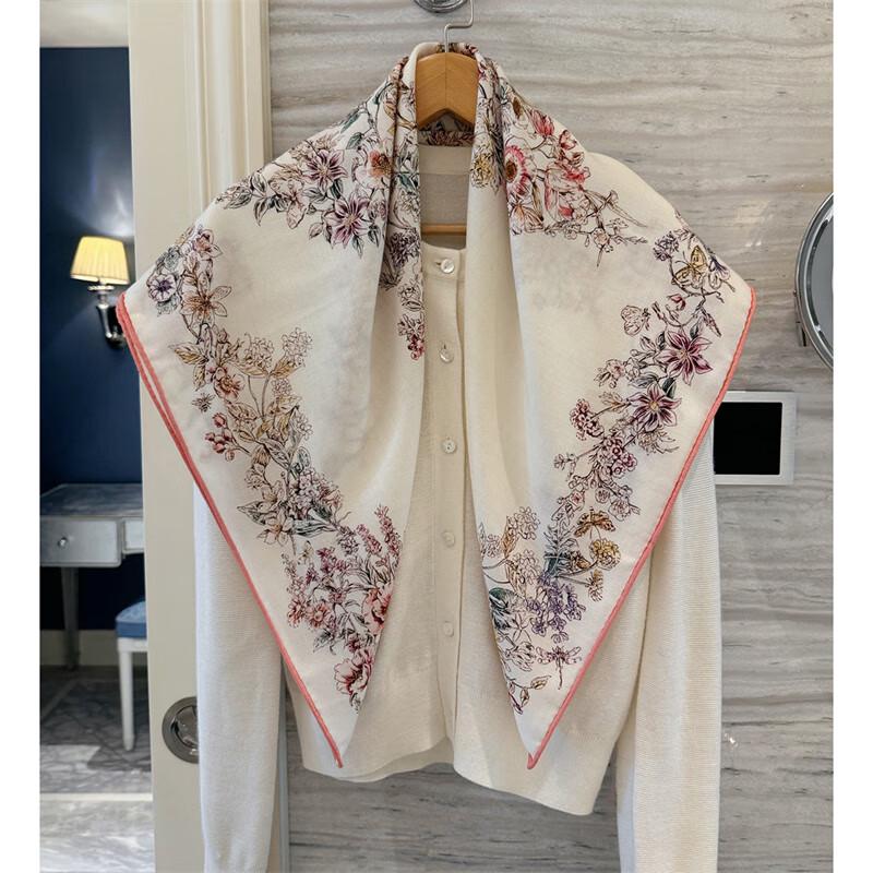 NINA SOLOR Floral Star Reversible Silk Wool Scarf