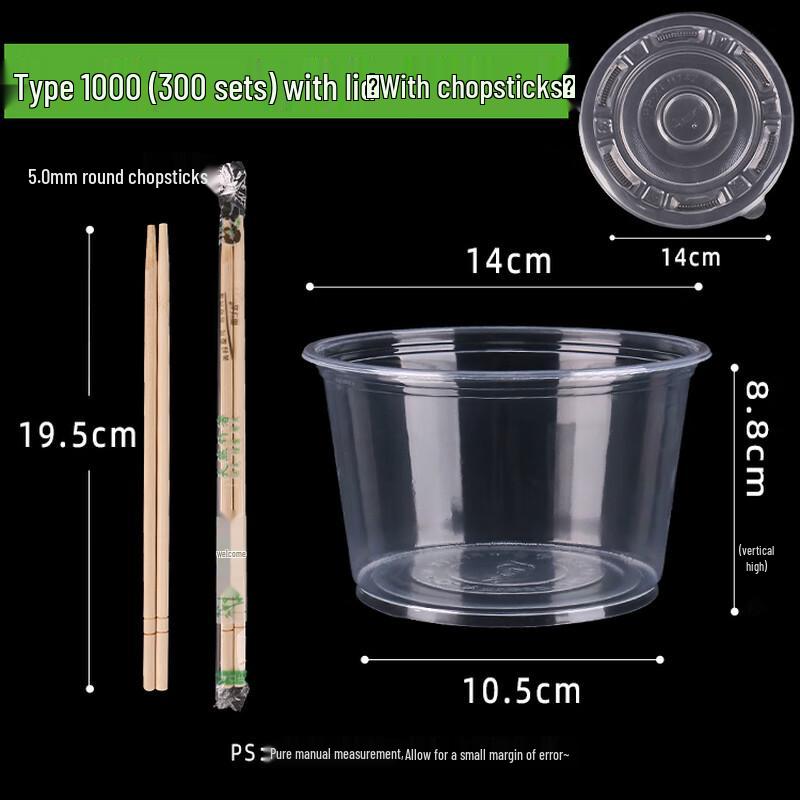 Disposable Plastic Bowls with Lids and Chopsticks Set