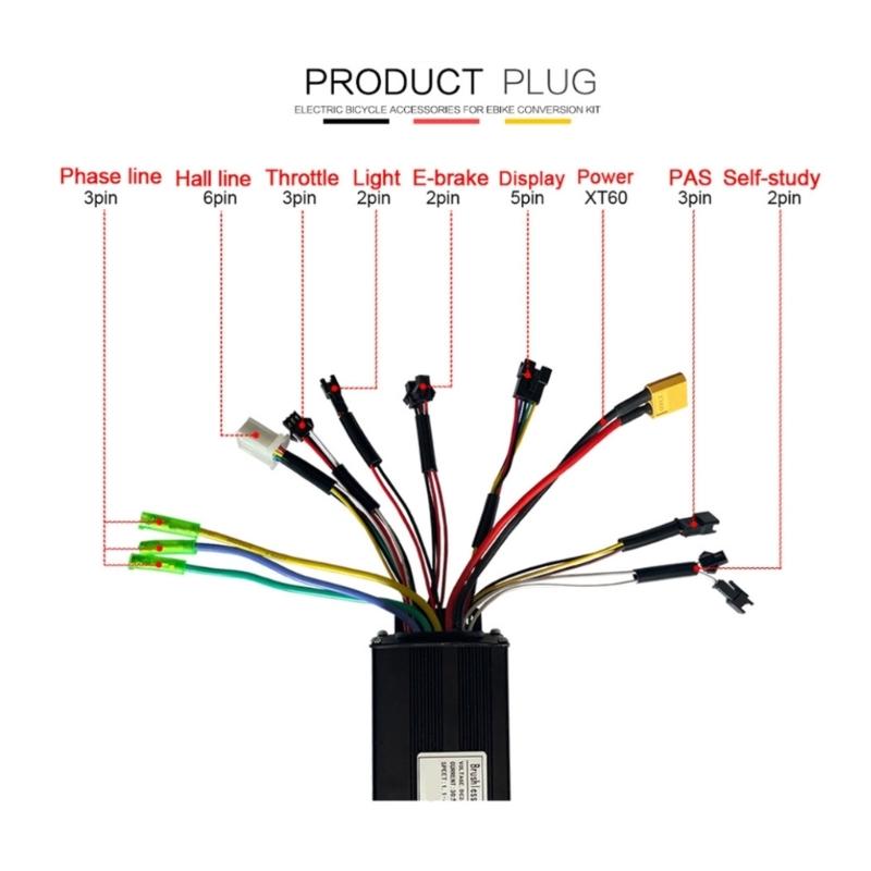 Контроллер 30A с синусоидальной волной для переоборудования электровелосипеда с отличным теплоотводом и тремя режимами 24В 36В 48В