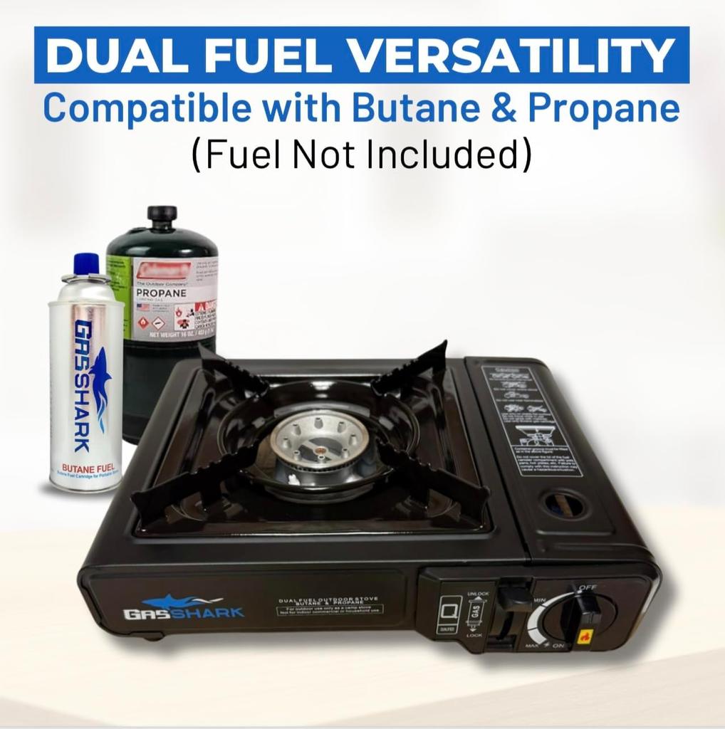 Портативная плита двойного топлива: Пропан или Бутан, 12K BTU, Для кемпинга и аварийного приготовления пищи с шлангом и чехлом