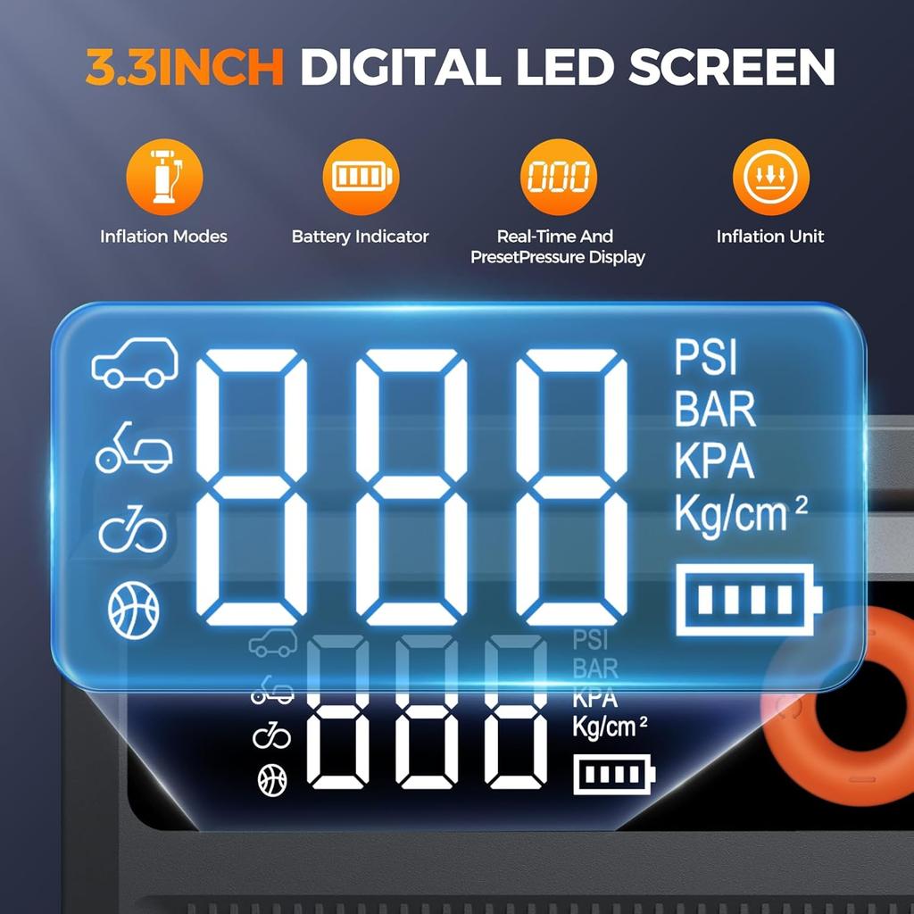 Автомобильный пуско-зарядное устройство 9-в-1 6000A, 26800 мАч, с компрессором 150 PSI, автоотключением, фонариком и проводами
