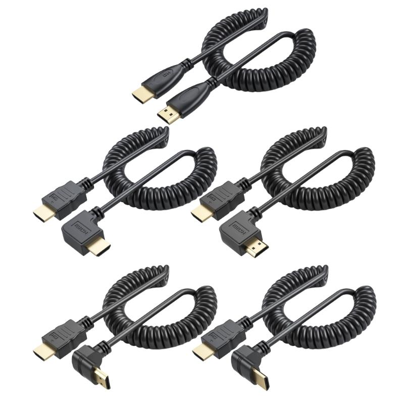 Right Angle HDTV Coiled Cable 90Degree Male to Male Spring Design Cord Extends from 19 to 75Inches Supports 4K60HZ — купить товар онлайн с бесплатной доставкой по всему миру!
