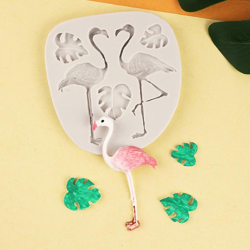 Силиконовая форма «Тропический фламинго и лист монстеры»