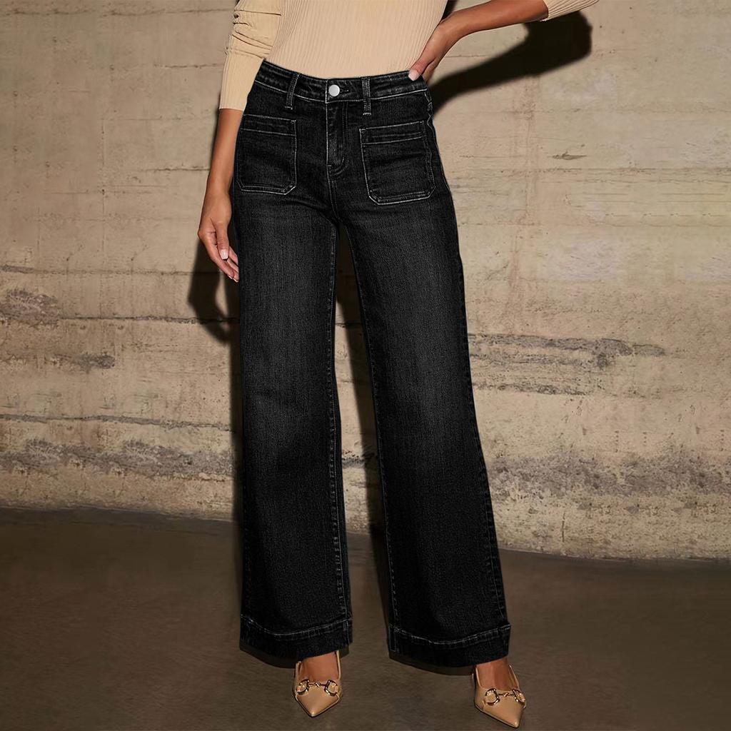 Женские джинсы с высокой посадкой в европейском и американском стиле, женские брюки прямого кроя с широкими штанинами в ретро-стиле
