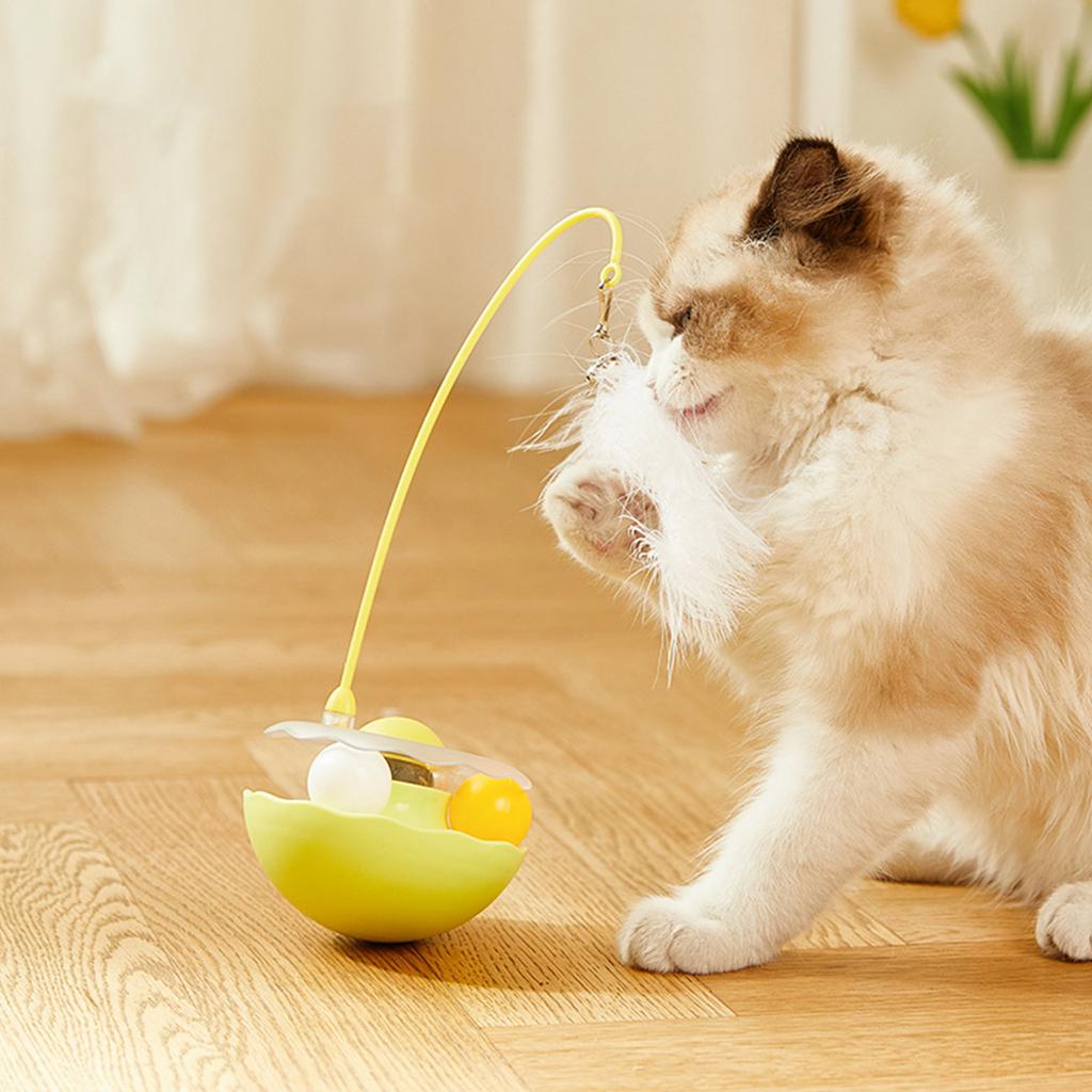 Игрушка-неваляшка для питомцев с перьями, дразнилка, карусель, мятная, разборная