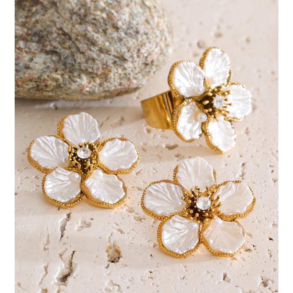 Eetit Популярный Набор Серьги-пусеты Кольцо из Нержавеющей Стали с Жемчугом из Смолы в виде Цветка в Ретро Стиле Водонепроницаемая Модная Трендовая Привлекательная Бижутерия 2025