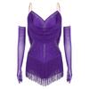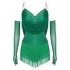 Женский плиссированный сетчатый драпированный леотард с кисточками для танцев, блестящими стразами, регулируемыми бретелями, вырезом и бахромой