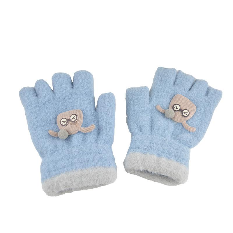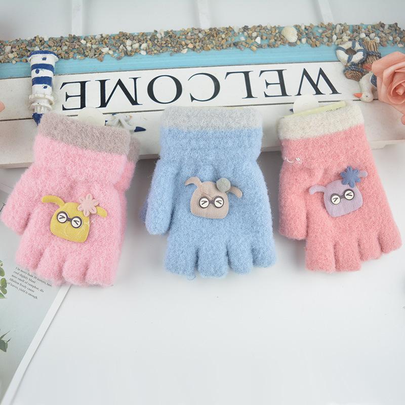 Зимние новые перчатки без пальцев для детей старшего и среднего школьного возраста, студенческие перчатки для письма, плюшевые теплые мультяшные шерстяные перчатки