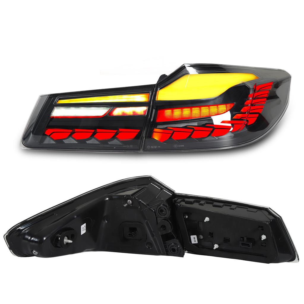 GTS OLED Style LED Tail Lights Dynamic Turn Signal Fit For 5 Series G30 M5 F90 Pre‑Facelift 2017 to 2020 Black Red
