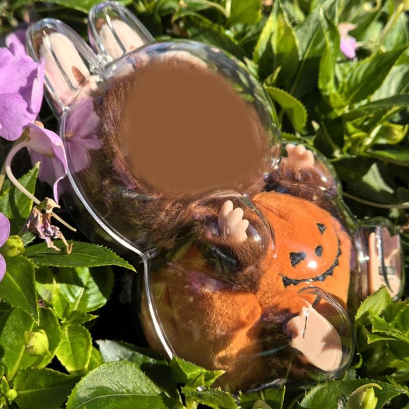 Clear Acrylic Figure Display Case With Silicone Chain Figure Carrying Case Protective Covers for Plush Doll Toy Figure
