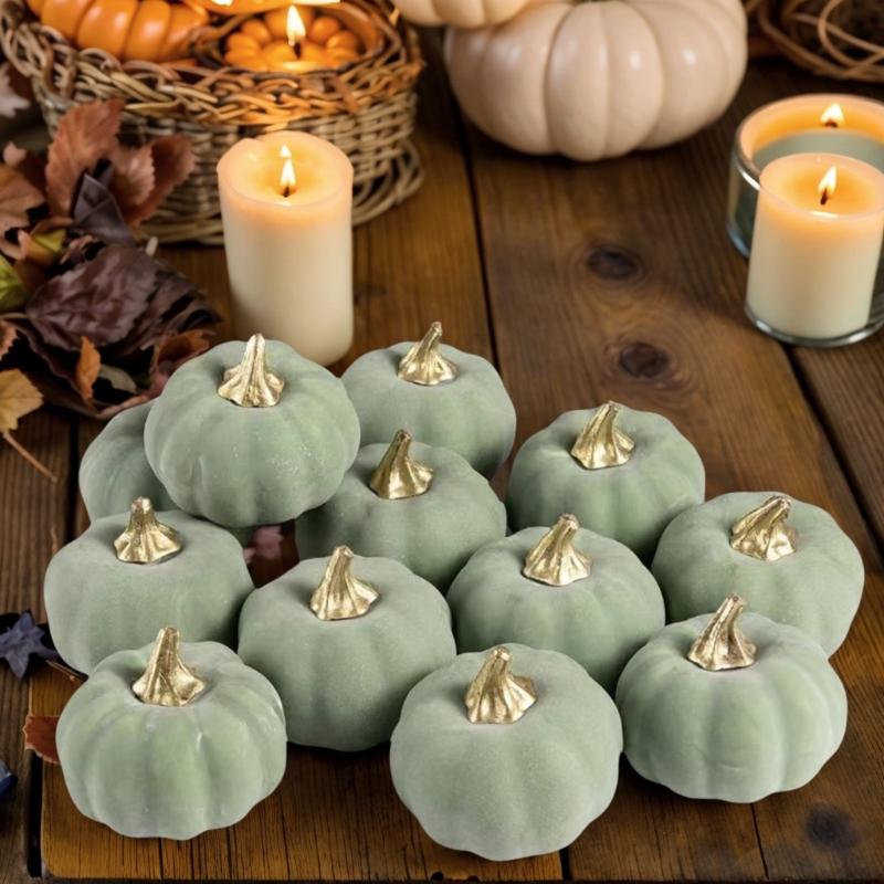 10Pcs Green Foam Pumpkins Artificial Pumpkins Fall Harvest Decoration for Halloween Thanksgiving Kitchen Decoration