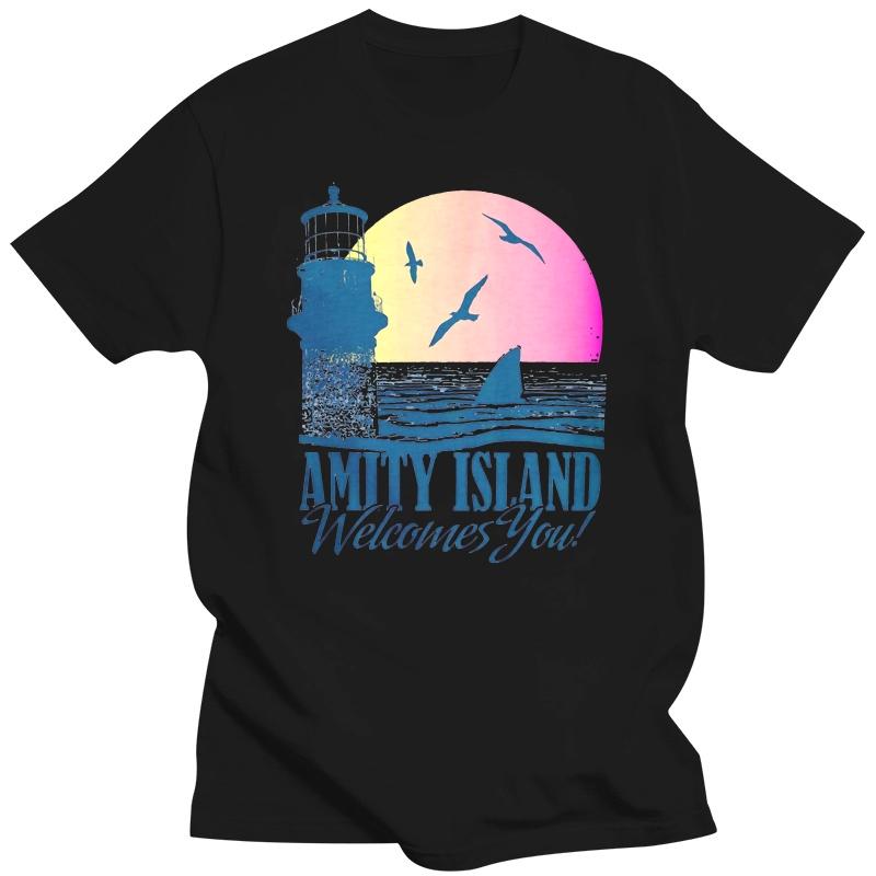fashion black tshirts for male tee-shirt graphic t shirts Jaws Movie Amity Island Welcomes You T-Shirt Confortable Tee Shirt