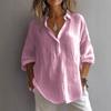 Весенне-летняя однотонная повседневная свободная льняная рубашка с длинным рукавом и V-образным вырезом для женщин
