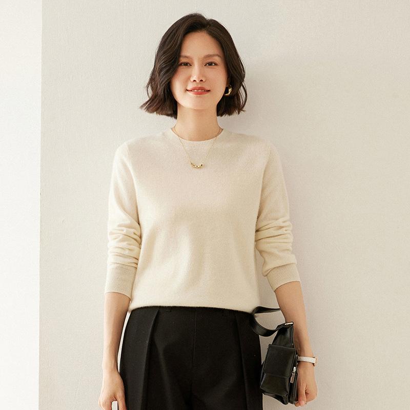 Базовая кашемировая футболка с плоским круглым вырезом для женщин на осень и зиму, однотонный свитер с длинными рукавами, универсальный и удобный пуловер