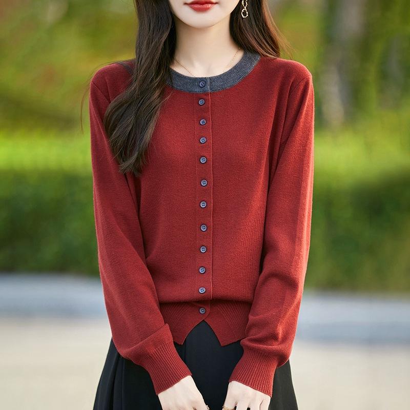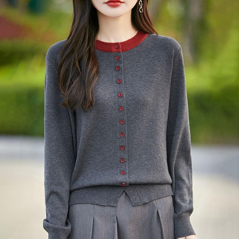 Ретро Мода Контрастный Цвет Поддельный Двойка Камвольный Шерстяной Вязаный Кардиган для Женщин Свободный Модный Универсальный Однобортный Жакет